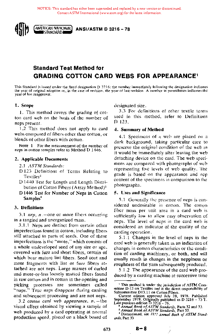 Method of Test for Grading Cotton Card Webs for Appearance (Withdrawn 1984)