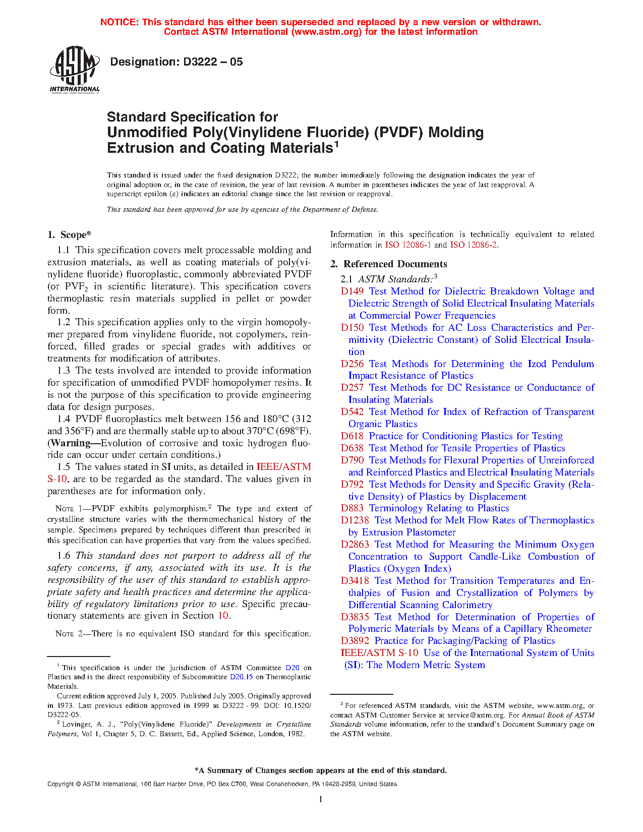 1.3 The tests involved are intended to provide information for specification of unmodified PVDF homopolymer resins. It is not the purpose of this specification to provide engineering data for design purposes.
