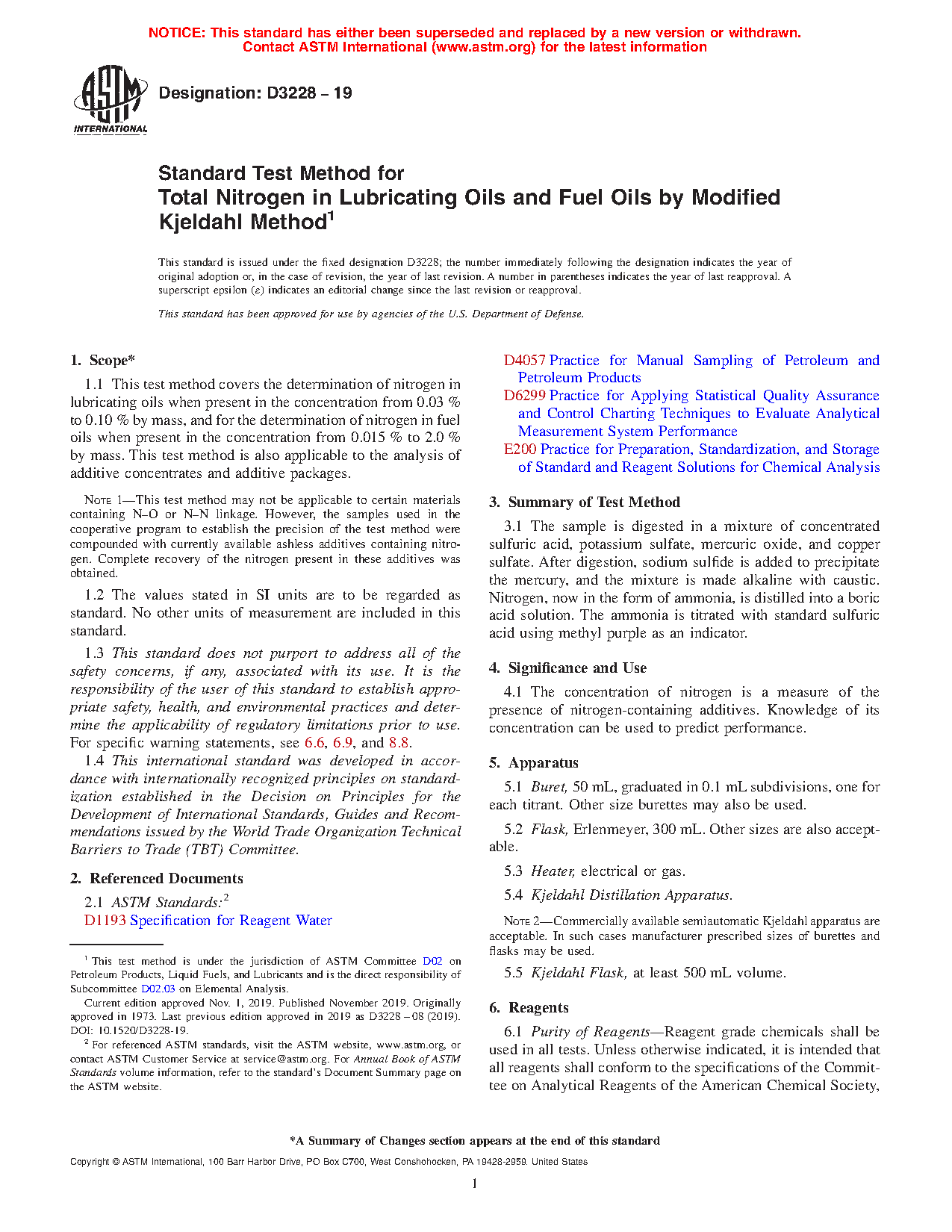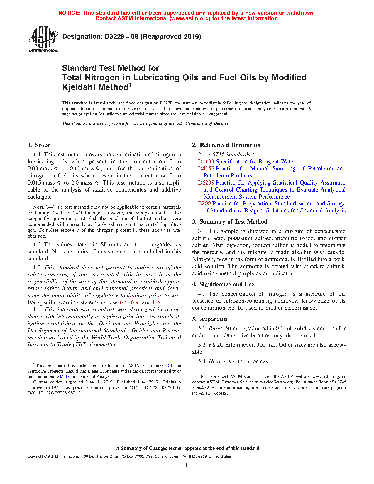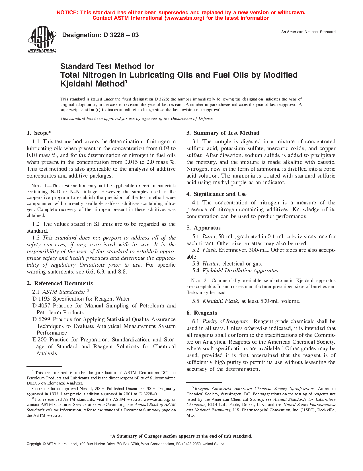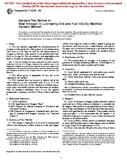 Note 1—This test method may not be applicable to certain materials containing N–O or N–N linkage. However, the samples used in the cooperative program to establish the precision of the test method were compounded with currently available ashless additives containing nitrogen. Complete recovery of the nitrogen present in these additives was obtained.