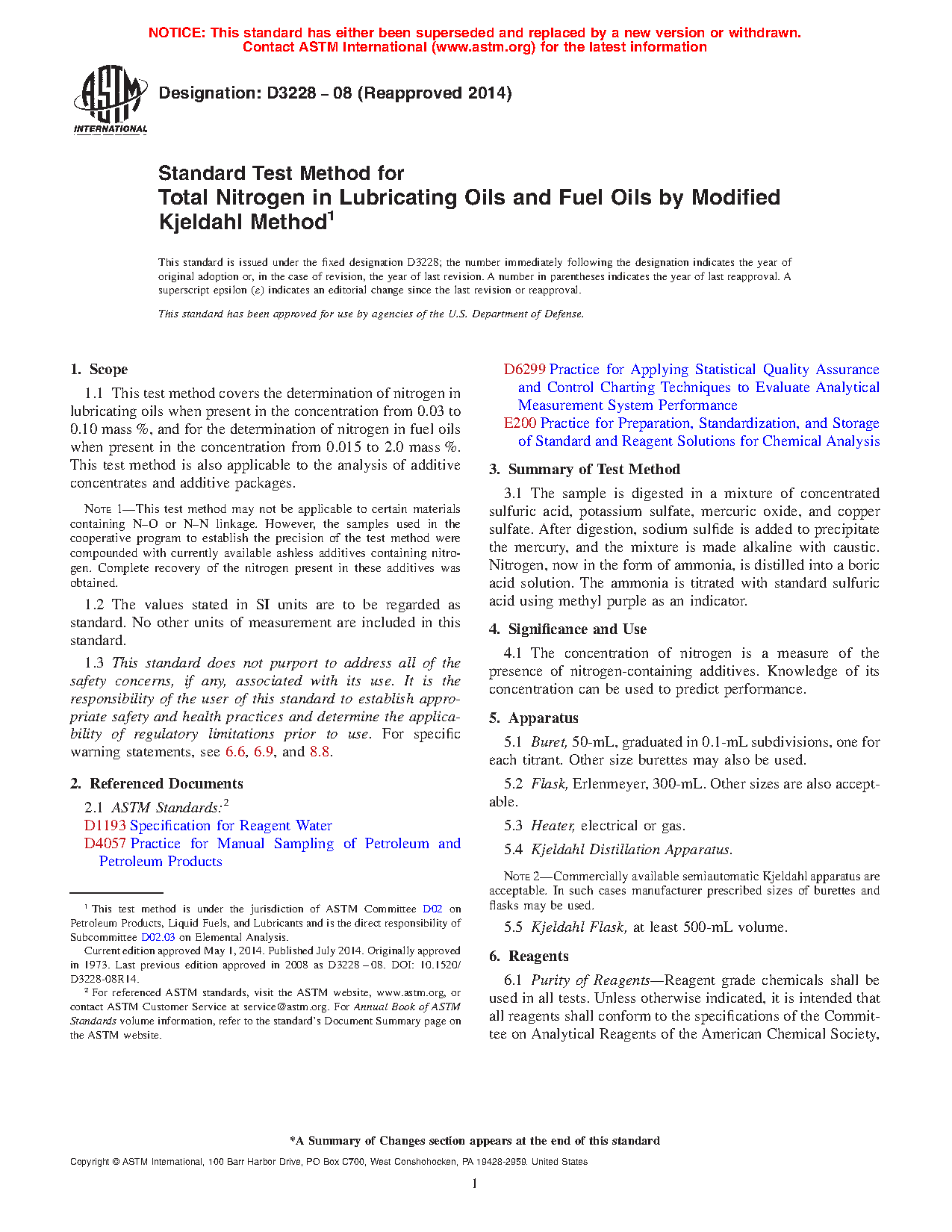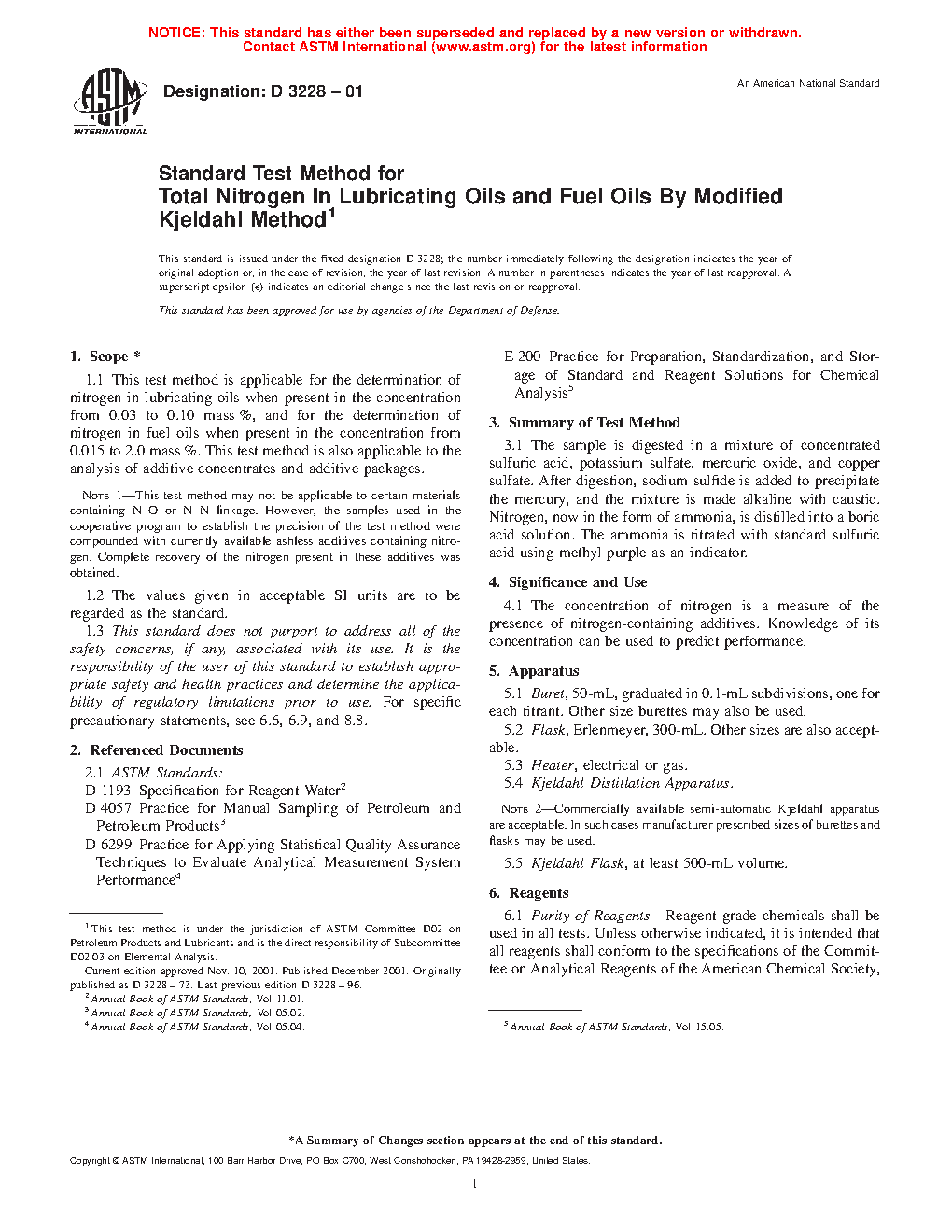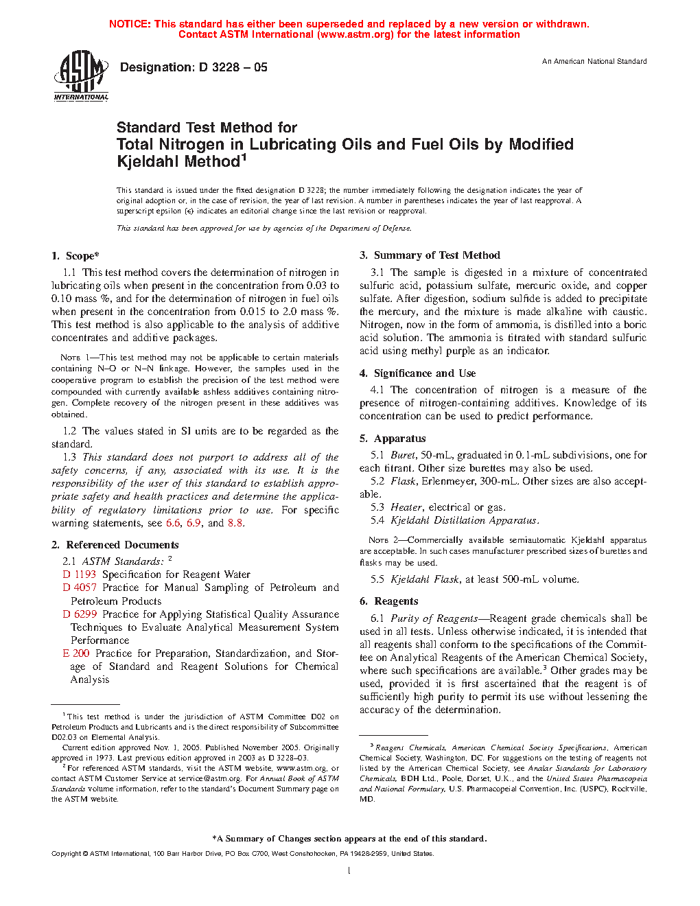Note 1—This test method may not be applicable to certain materials containing N–O or N–N linkage. However, the samples used in the cooperative program to establish the precision of the test method were compounded with currently available ashless additives containing nitrogen. Complete recovery of the nitrogen present in these additives was obtained.