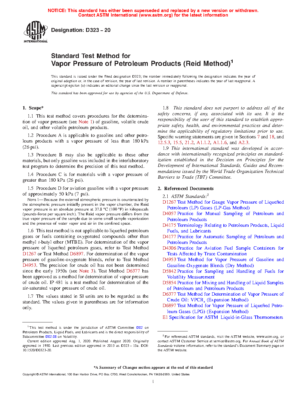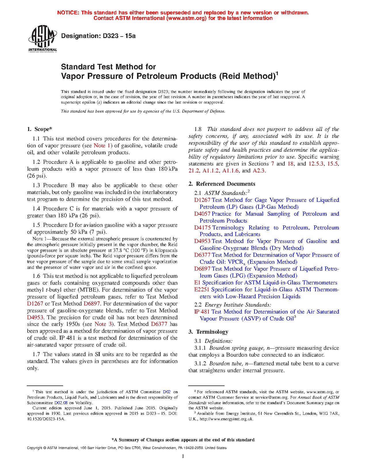 1.5 Procedure D for aviation gasoline with a vapor pressure of approximately 50 kPa (7 psi).