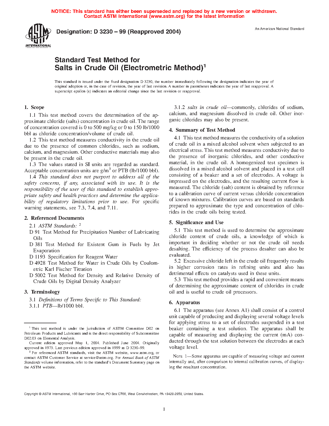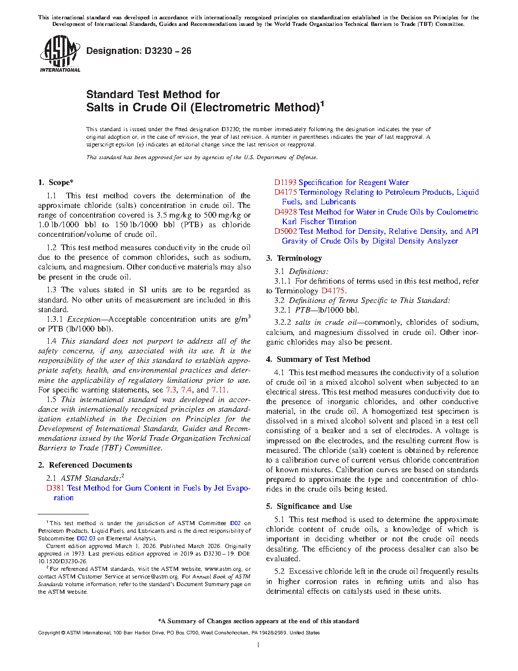 1.2 This test method measures conductivity in the crude oil due to the presence of common chlorides, such as sodium, calcium, and magnesium. Other conductive materials may also be present in the crude oil.