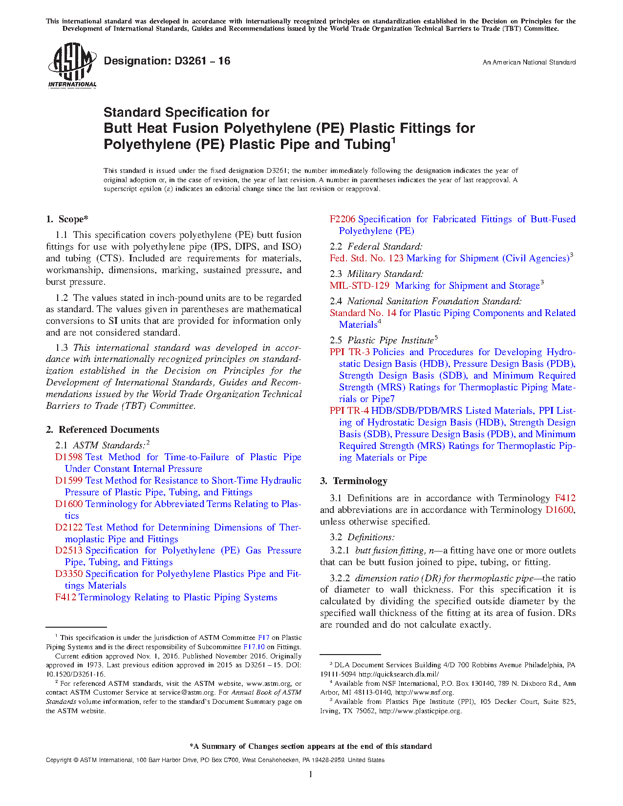 Standard Specification for Butt Heat Fusion Polyethylene (PE) Plastic Fittings for Polyethylene (PE) Plastic Pipe and Tubing
