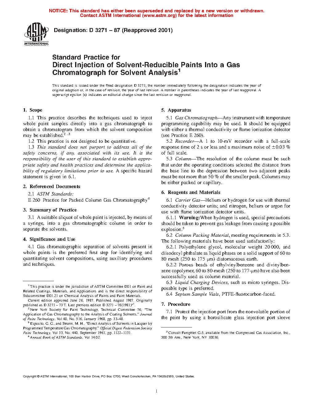 Standard Practice for Direct Injection of Solvent-Reducible Paints Into a Gas Chromatograph for Solvent Analysis (Withdrawn 2019)