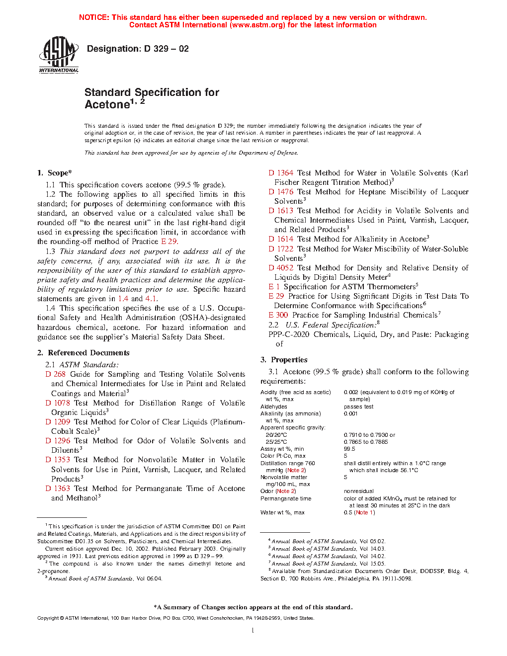 1.5 This specification specifies the use of a U.S. Occupational Safety and Health Administration (OSHA)-designated hazardous chemical, acetone. For hazard information and guidance see the supplier's Material Safety Data Sheet.