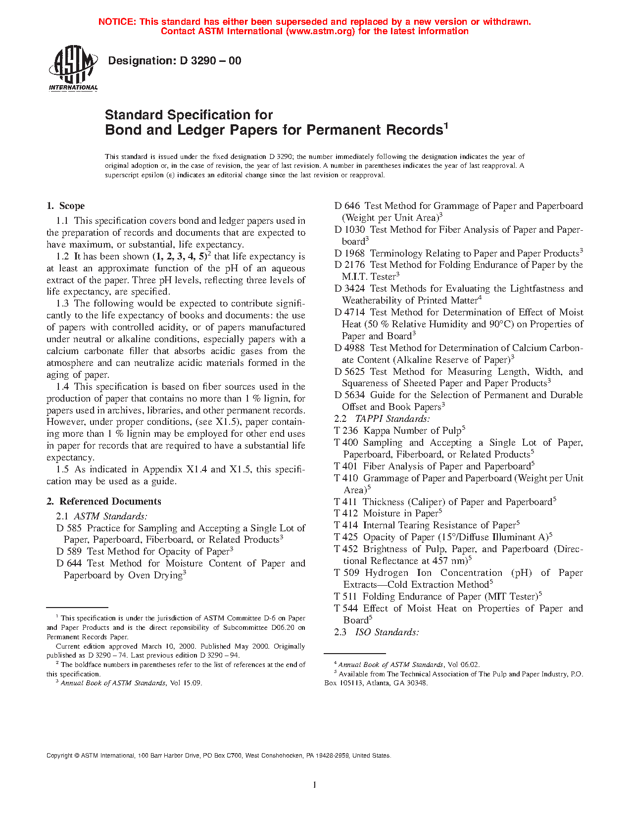 1.1 This specification covers bond and ledger papers used in the preparation of records and documents that are expected to have maximum, or substantial, life expectancy.