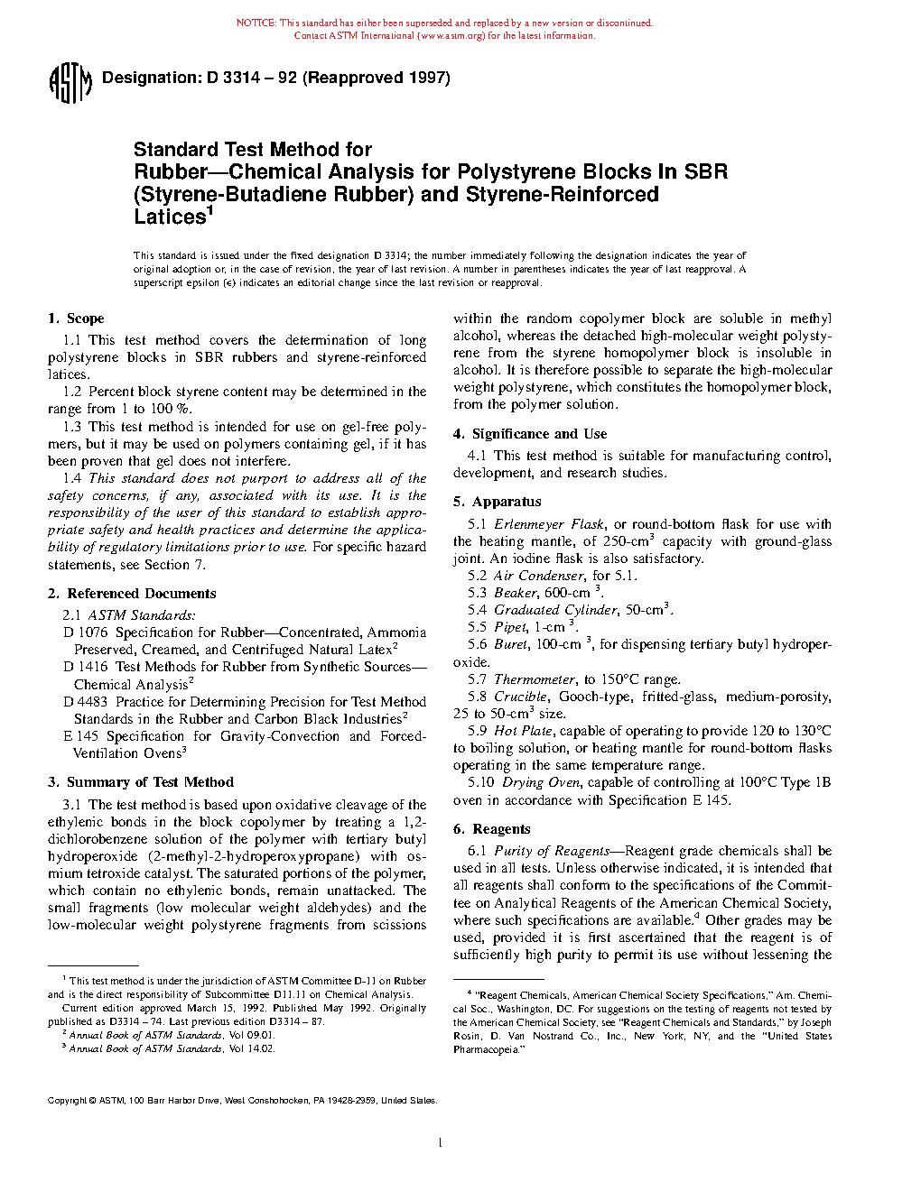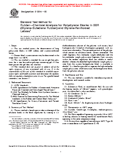 1.1 This test method covers the determination of long polystyrene blocks in SBR rubbers and styrene-reinforced latices.