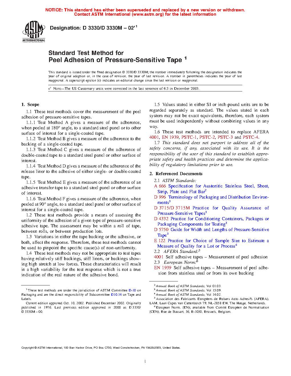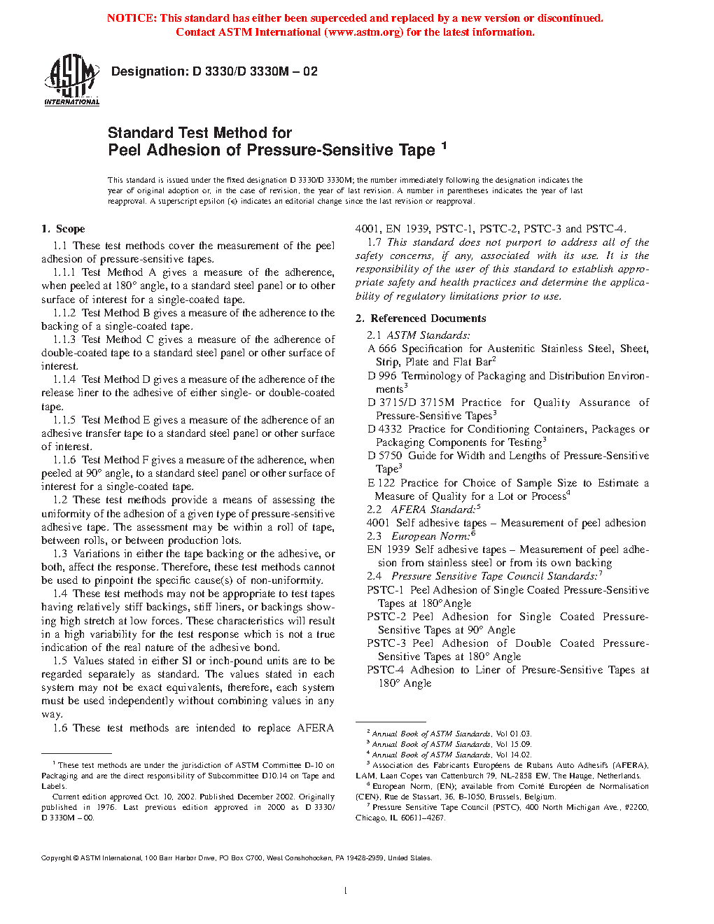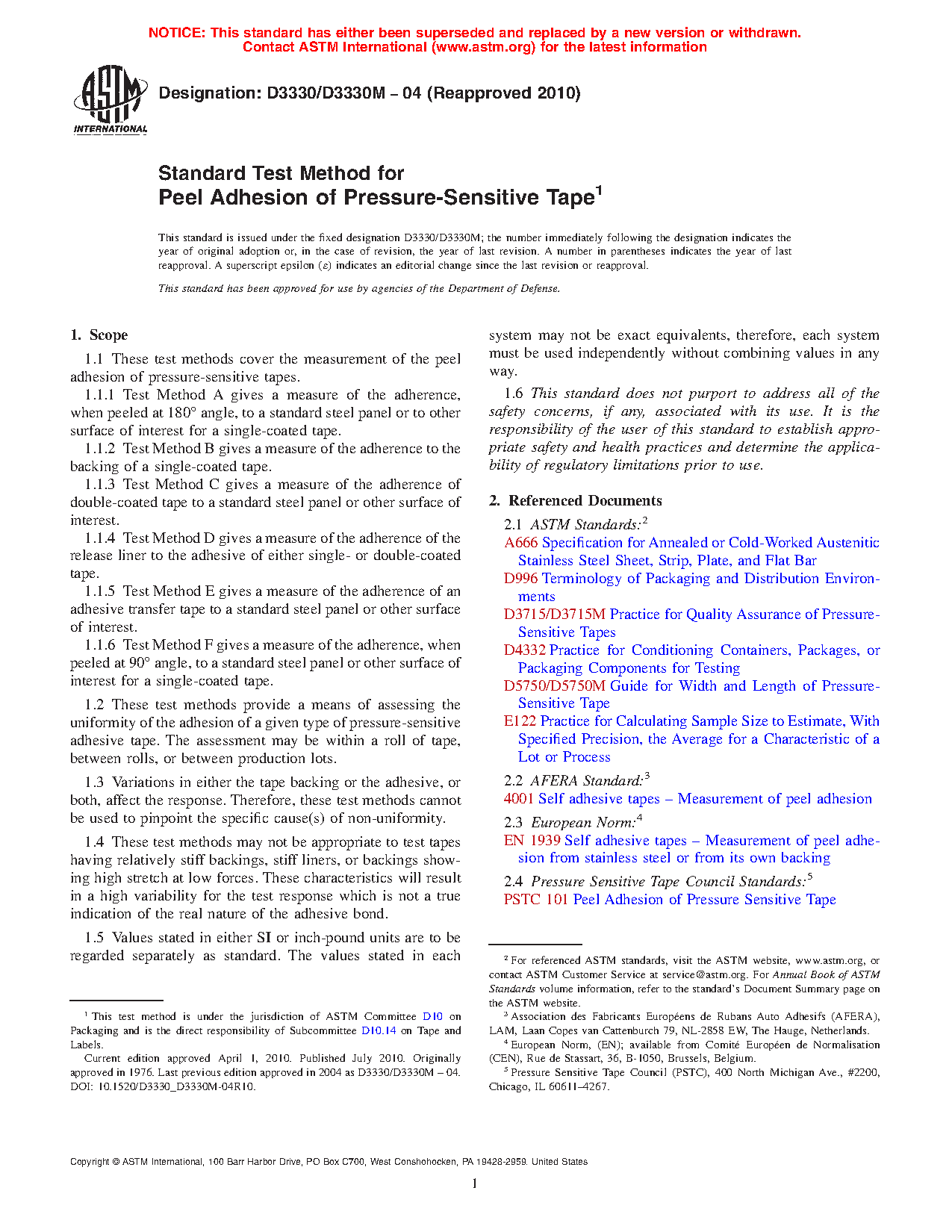 1.6 These test methods are intended to replace AFERA 4001, EN 1939, PSTC-1, PSTC-2, PSTC-3 and PSTC-4.