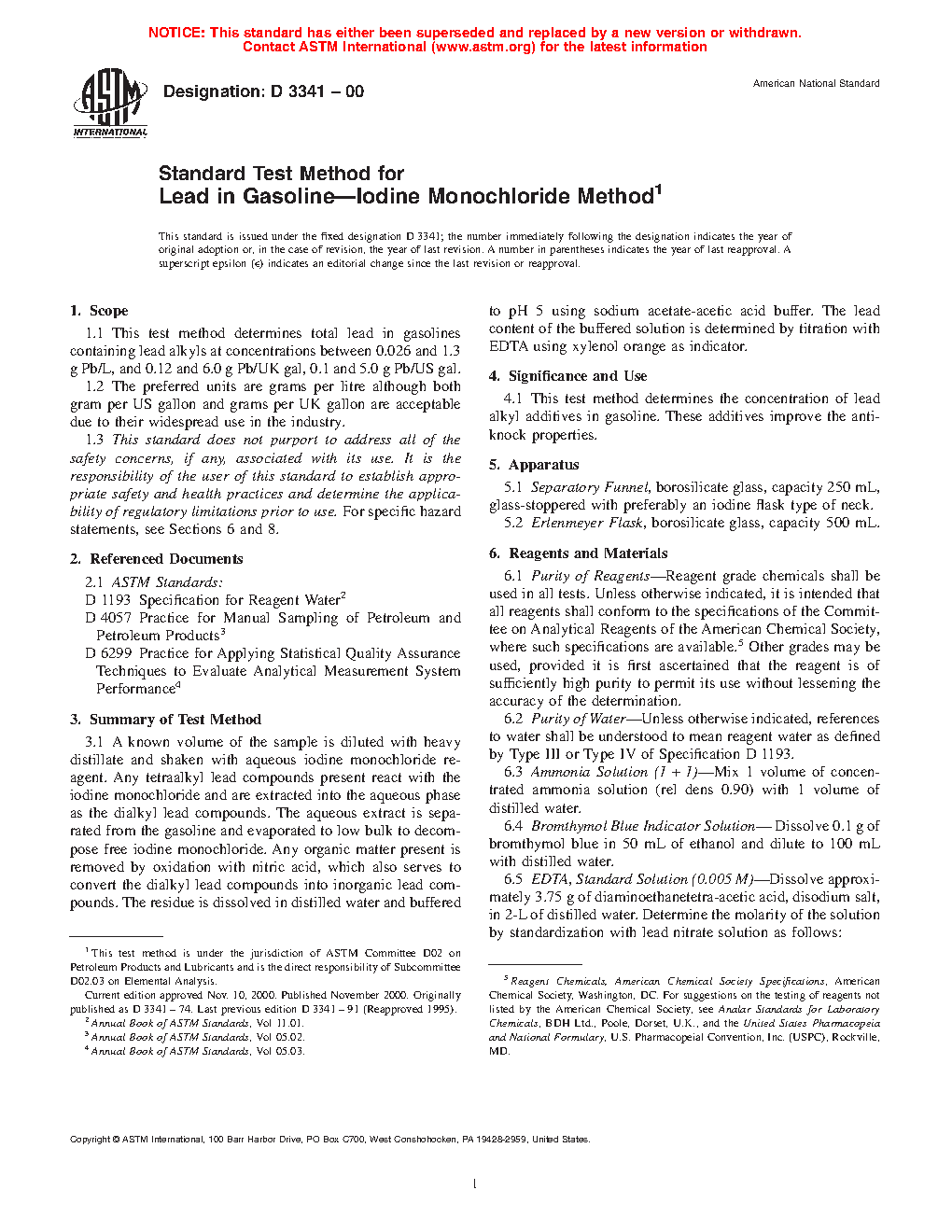 4.1 This test method determines the concentration of lead alkyl additives in gasoline. These additives improve the antiknock properties.