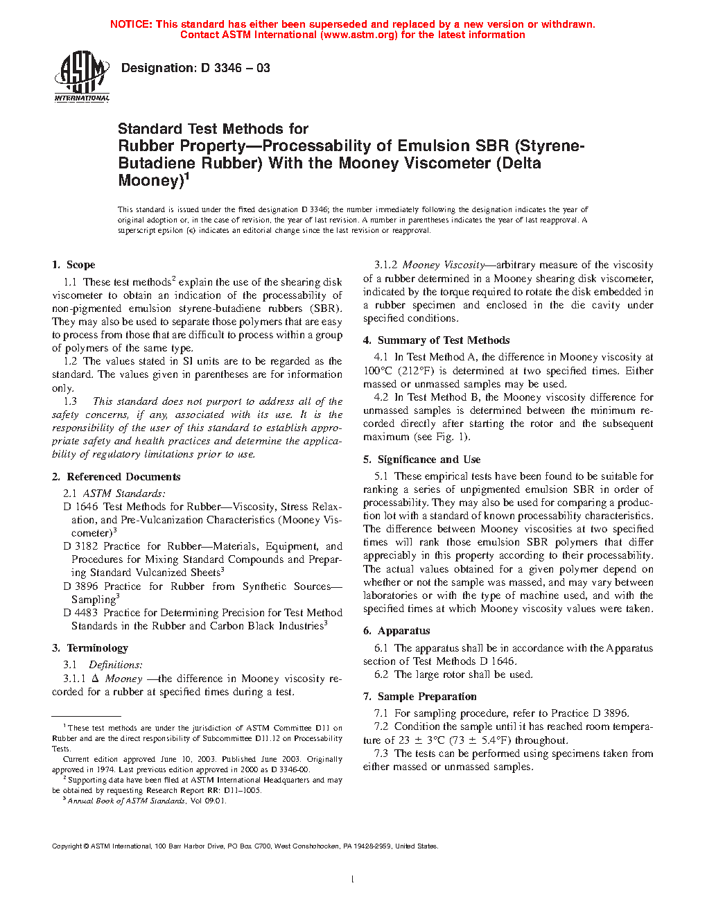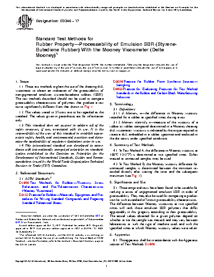 1.1 These test methods explain the use of the shearing disk viscometer to obtain an indication of the processability of non-pigmented emulsion styrene-butadiene rubbers (SBR). They may also be used to separate those polymers that are easy to process from those that are difficult to process within a group of polymers of the same type.