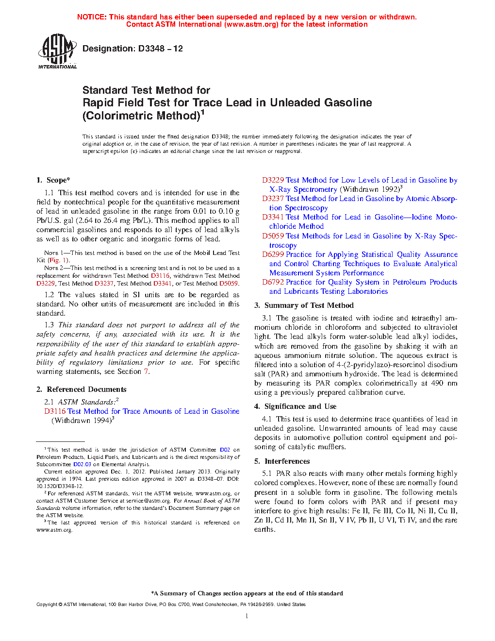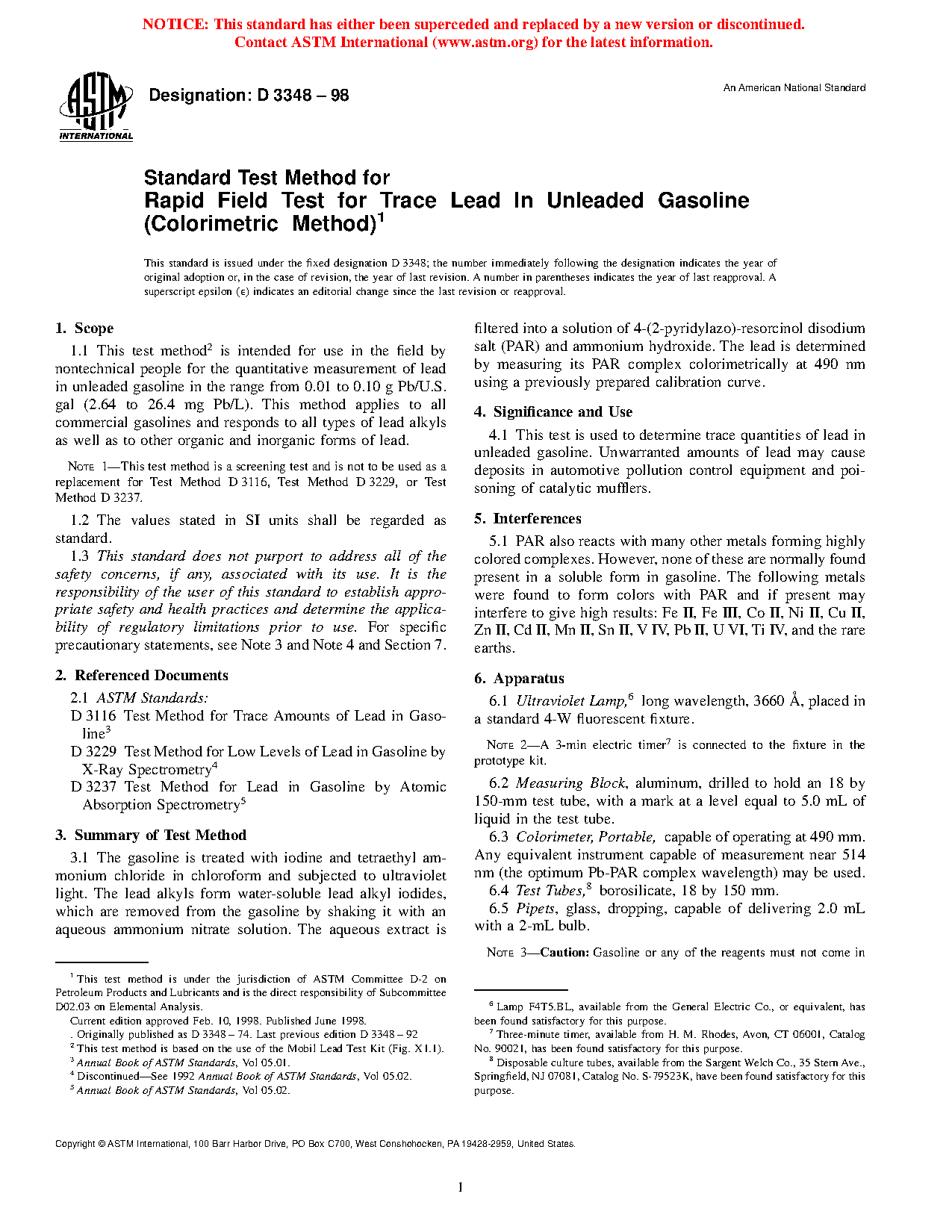 Note 2: This test method is a screening test and is not to be used as a replacement for withdrawn Test Method D3116, withdrawn Test Method D3229, Test Method D3237, Test Method D3341, or Test Method D5059.