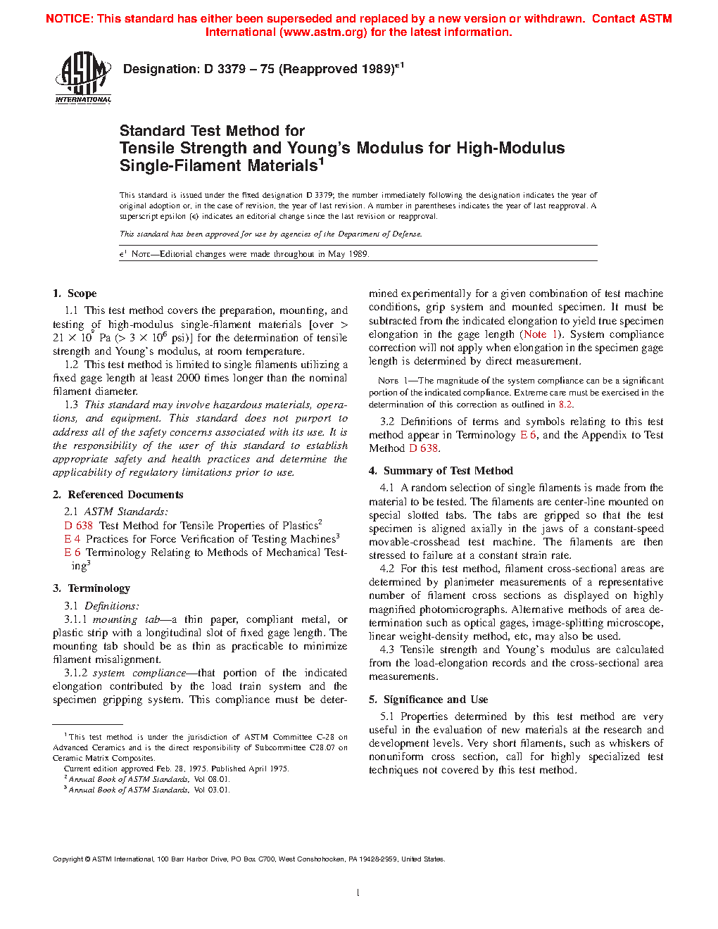ASTM D3379-75(1989)e1 (R1975)