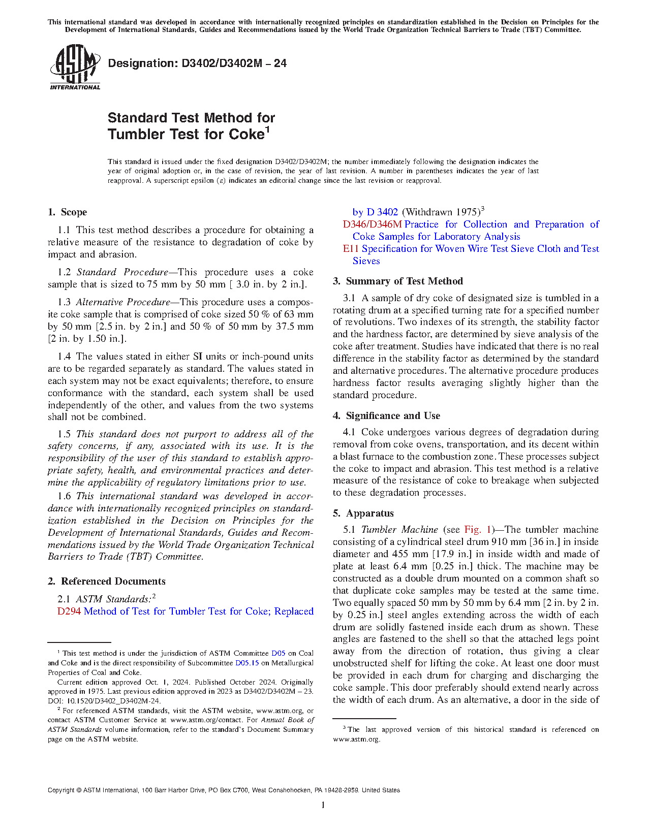 1.2 Standard Procedure—This procedure uses a coke sample sized to −75 mm [−3 in.] and + 50 mm [ + 2 in.].