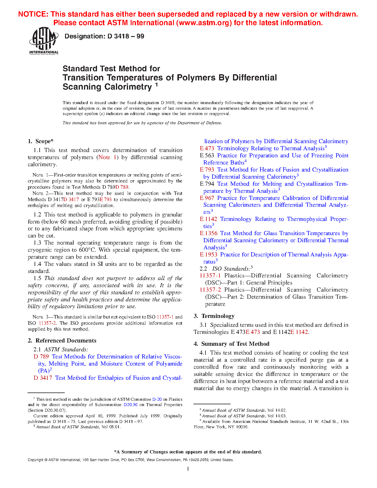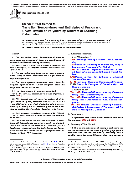 Note 3: This standard is similar but not equivalent to ISO 11357-1, -2, -3. The ISO procedures provide additional information not supplied by this test method.