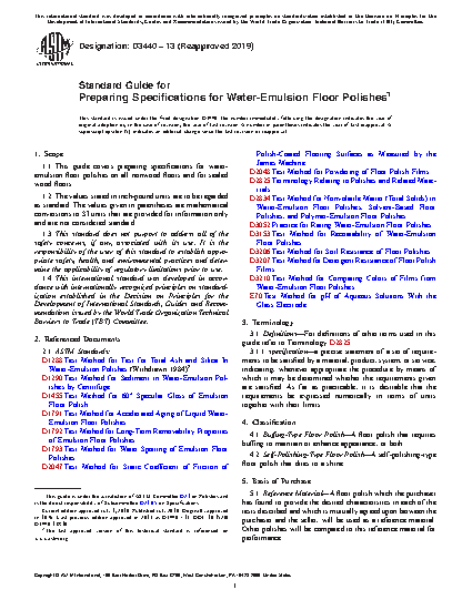 Standard Guide for Preparing Specifications for Water-Emulsion Floor Polishes