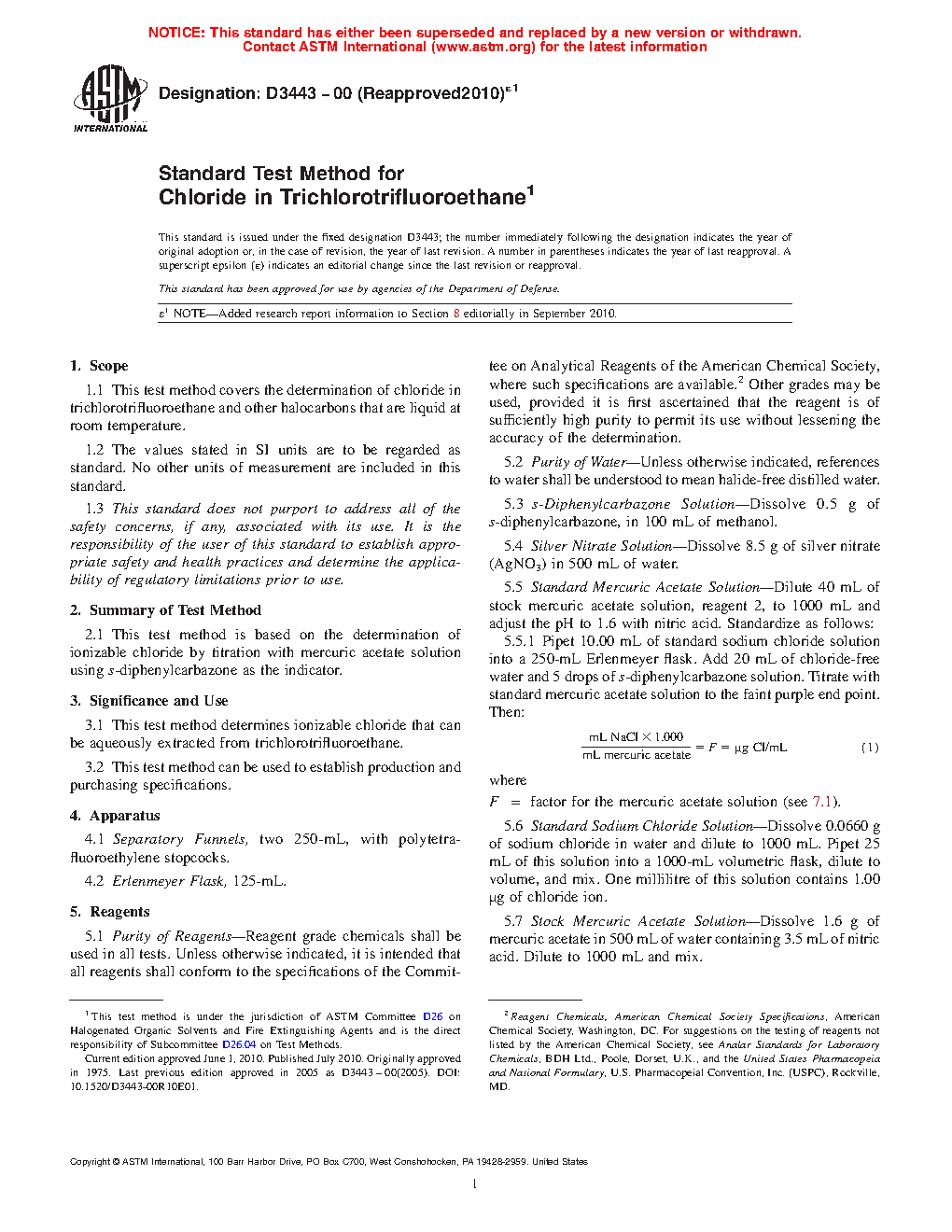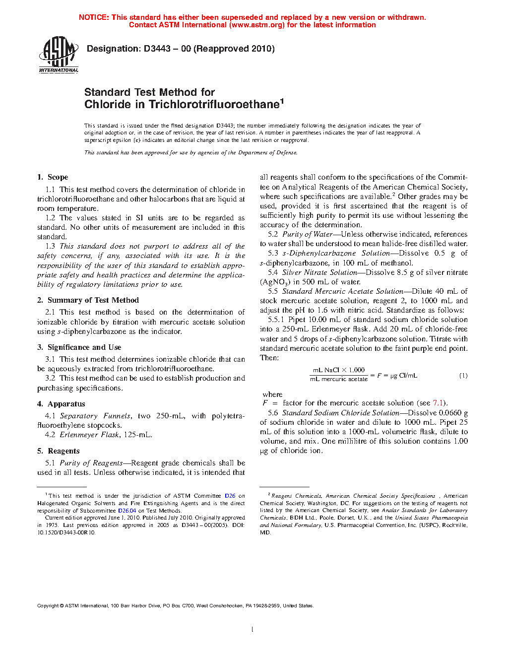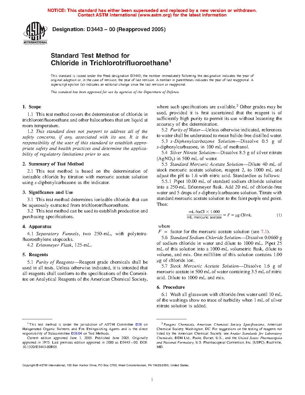 Standard Test Method for Chloride in Trichlorotrifluoroethane