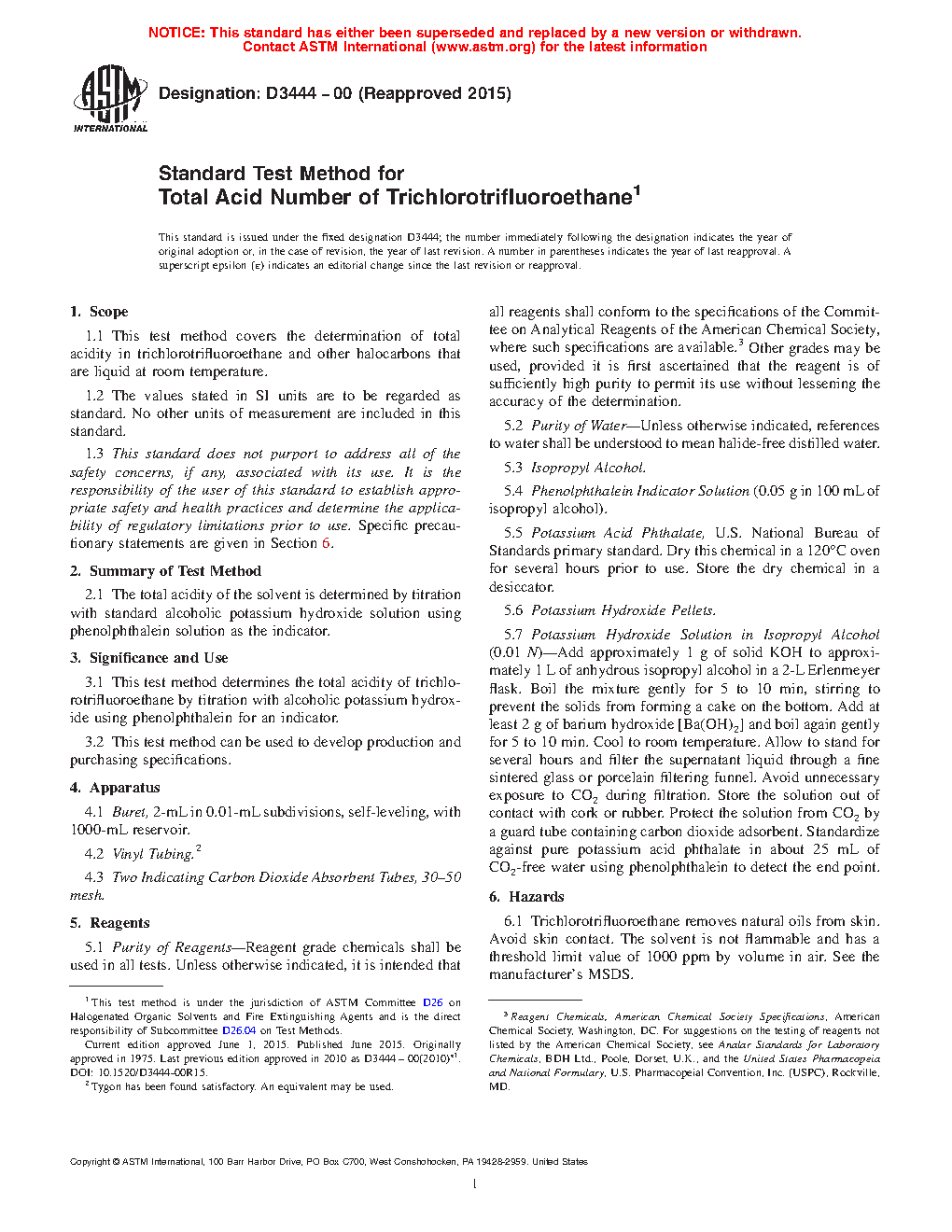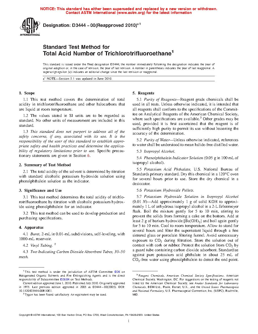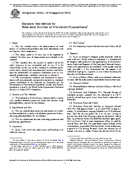 3.1 This test method determines the total acidity of trichlorotrifluoroethane by titration with alcoholic potassium hydroxide using phenolphthalein for an indicator.