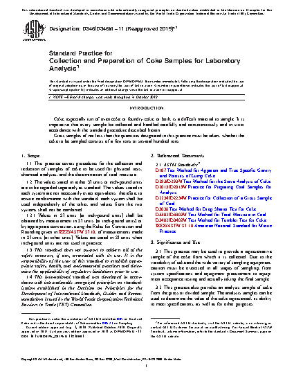 1.3 The following ISO standards2 shall be the governing documents specifying requirements for the sampling and preparation of metallurgical coke: