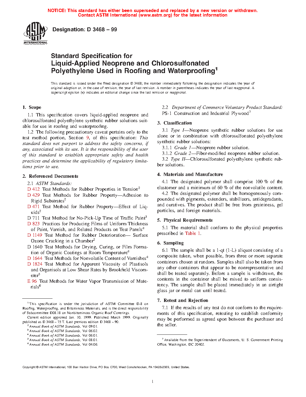 Standard Specification for Liquid-Applied Neoprene and Chlorosulfonated Polyethylene Used in Roofing and Waterproofing