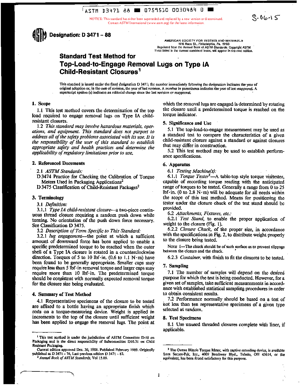 Test Method for Top-Load-to-Engage Removal Lugs on Type Ia Child-Resistant Closures