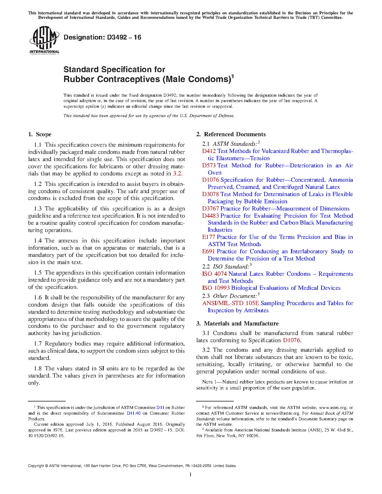 1.3 The applicability of this specification is as a design guideline and a reference test specification. It is not intended to be a routine quality control specification for condom manufacturing operations.