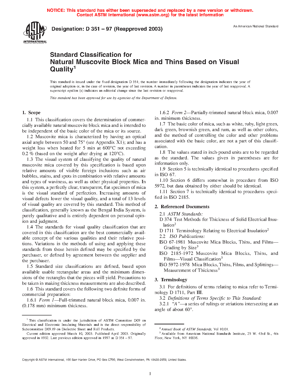 1.6.1 Form 1—Full-trimmed natural block mica, 0.007 in. (0.178 mm) minimum thickness.