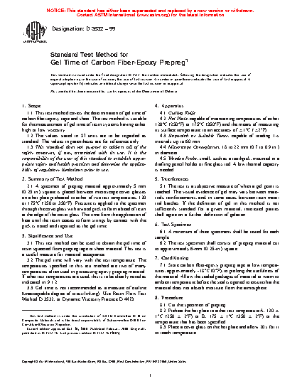 1.1 This test method covers the determination of gel time of carbon fiber-epoxy tape and sheet. The test method is suitable for the measurement of gel time of resin systems having either high or low viscosity.