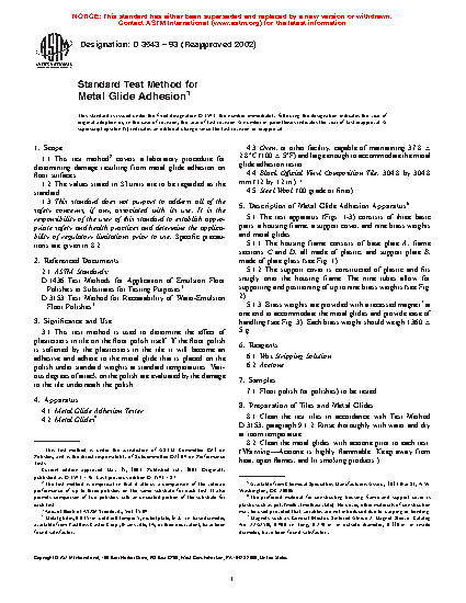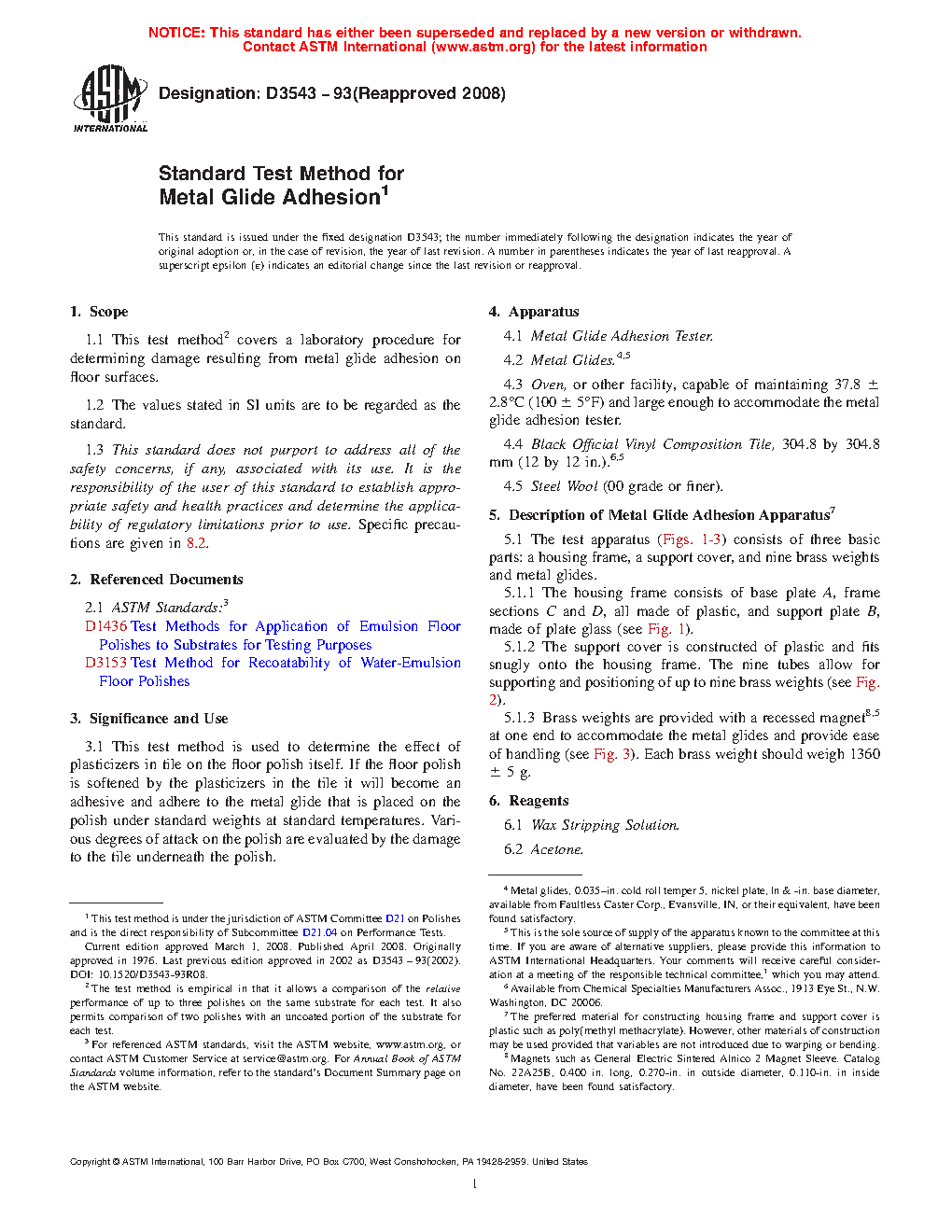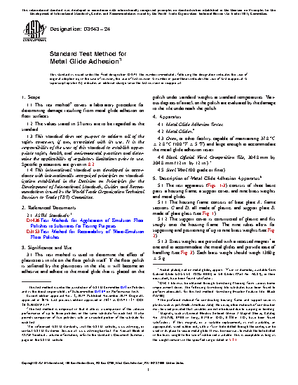 1.1 This test method2 covers a laboratory procedure for determining damage resulting from metal glide adhesion on floor surfaces.