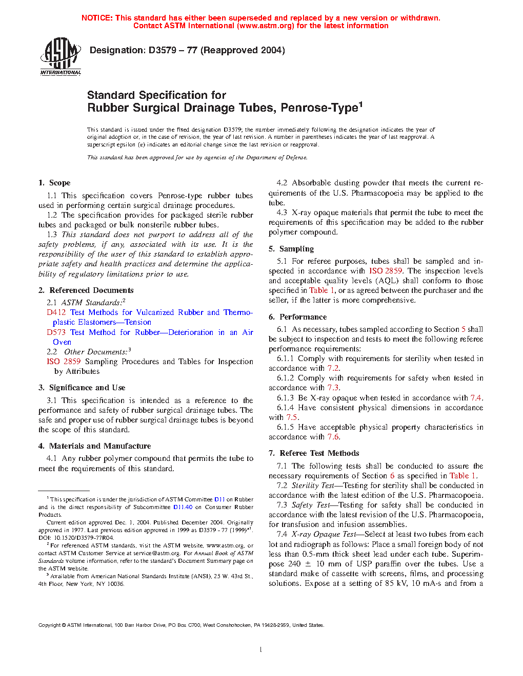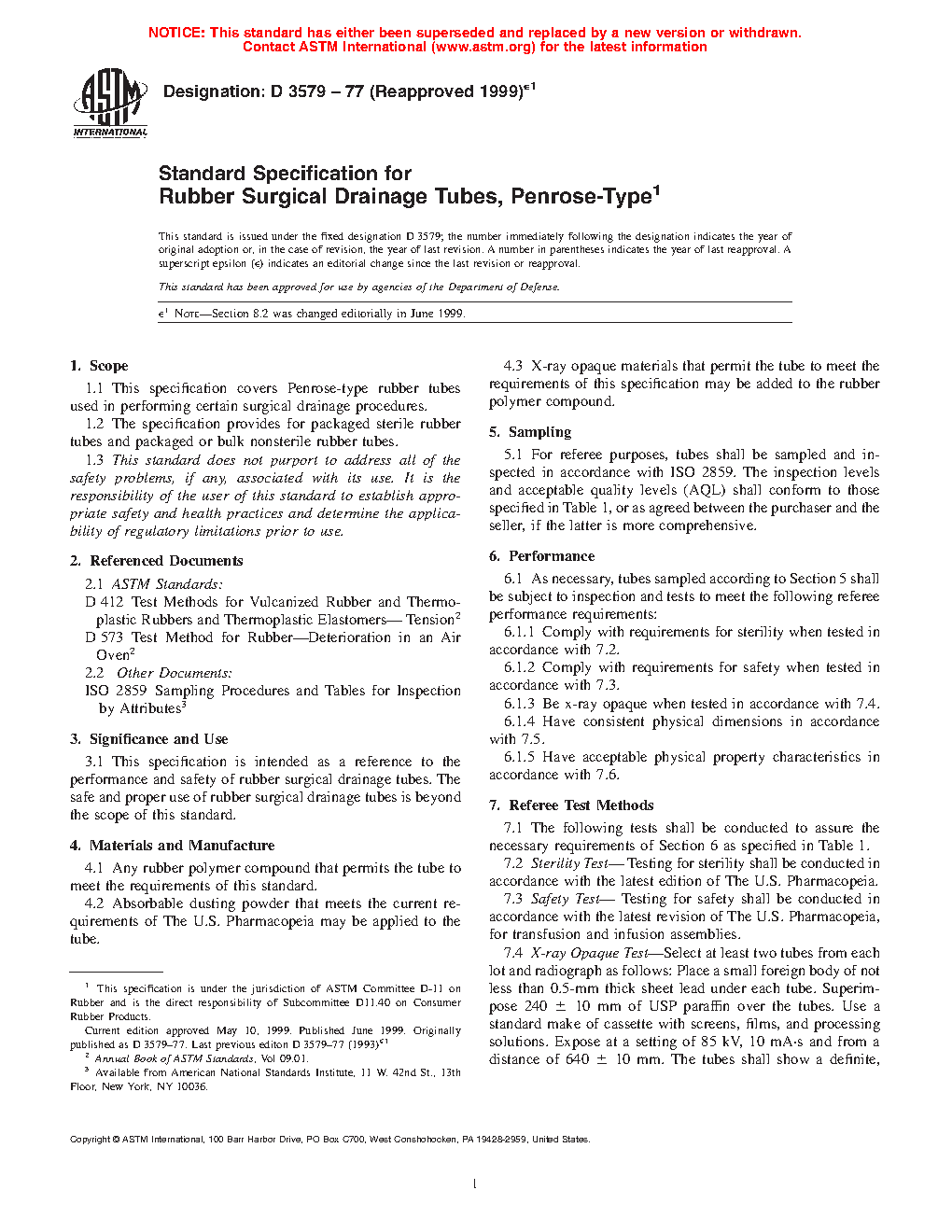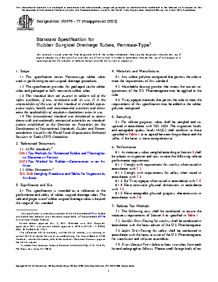 3.1 This specification is intended as a reference to the performance and safety of rubber surgical drainage tubes. The safe and proper use of rubber surgical drainage tubes is beyond the scope of this standard.