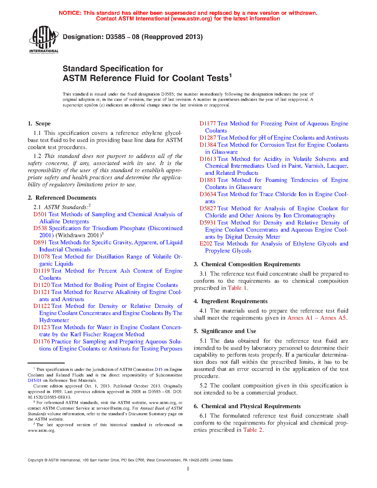 1.1 This specification covers a reference ethylene glycol-base test fluid to be used in providing base line data for ASTM coolant test procedures.