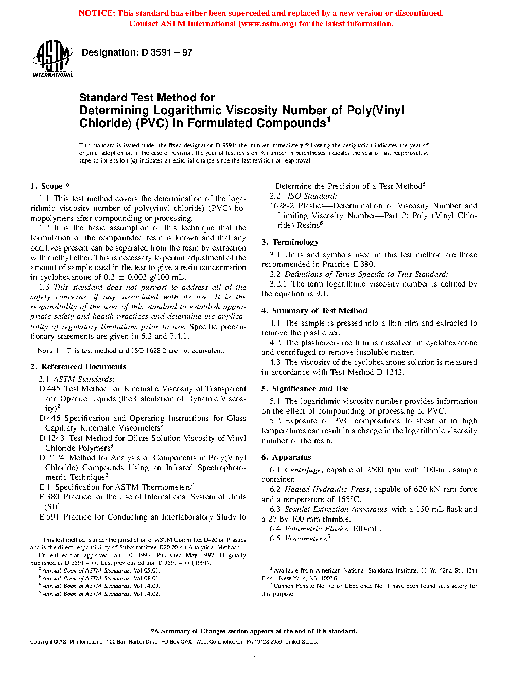 5.2 Exposure of PVC compositions to shear or to high temperatures can result in a change in the logarithmic viscosity number of the resin.