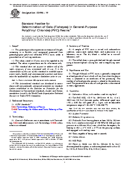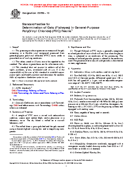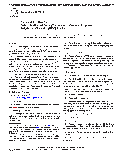 1.1 This practice provides a quantitative measure of the gels remaining in a flexible vinyl compound processed from general-purpose poly(vinyl chloride) (PVC) resins under a prescribed set of working conditions.