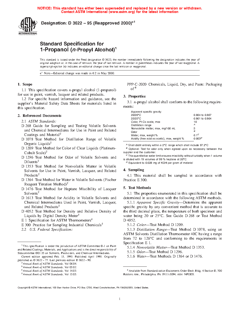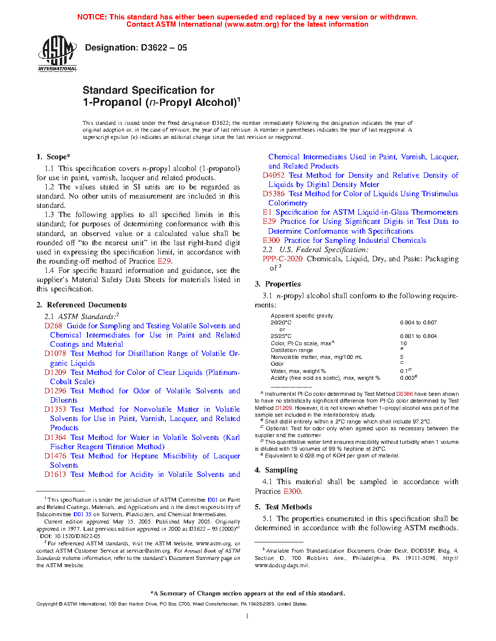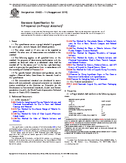 1.1 This specification covers n-propyl alcohol (1-propanol) for use in paint, varnish, lacquer and related products.
