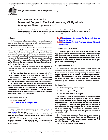 4.1 Electrical insulating oil may contain small amounts of dissolved metals derived either directly from the base oil or from contact with metals during refining or service. When copper is present, it acts as a catalyst in promoting oxidation of the oil. This test method is useful for research for new oils and to assess the condition of service-aged oils. Consideration should be given to the limits of detection outlined in the scope.