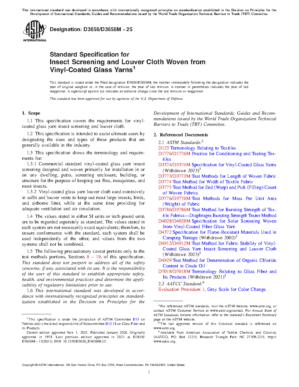 1.1 This specification covers the requirements for vinyl-coated glass yarn insect screening and louver cloth.