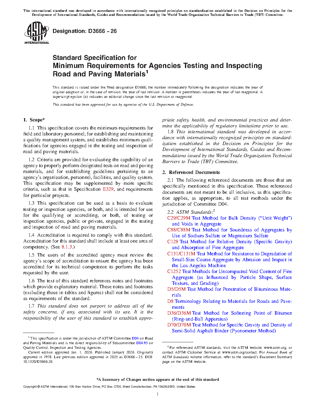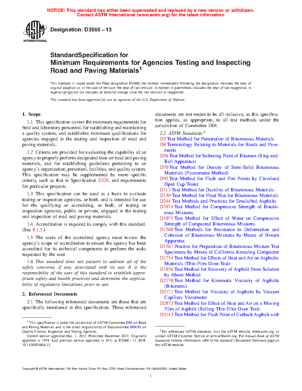 1.3 This specification can be used as a basis to evaluate testing or inspection agencies, or both, and is intended for use for the qualifying or accrediting, or both, of testing or inspection agencies, public or private, engaged in the testing and inspection of road and paving materials.