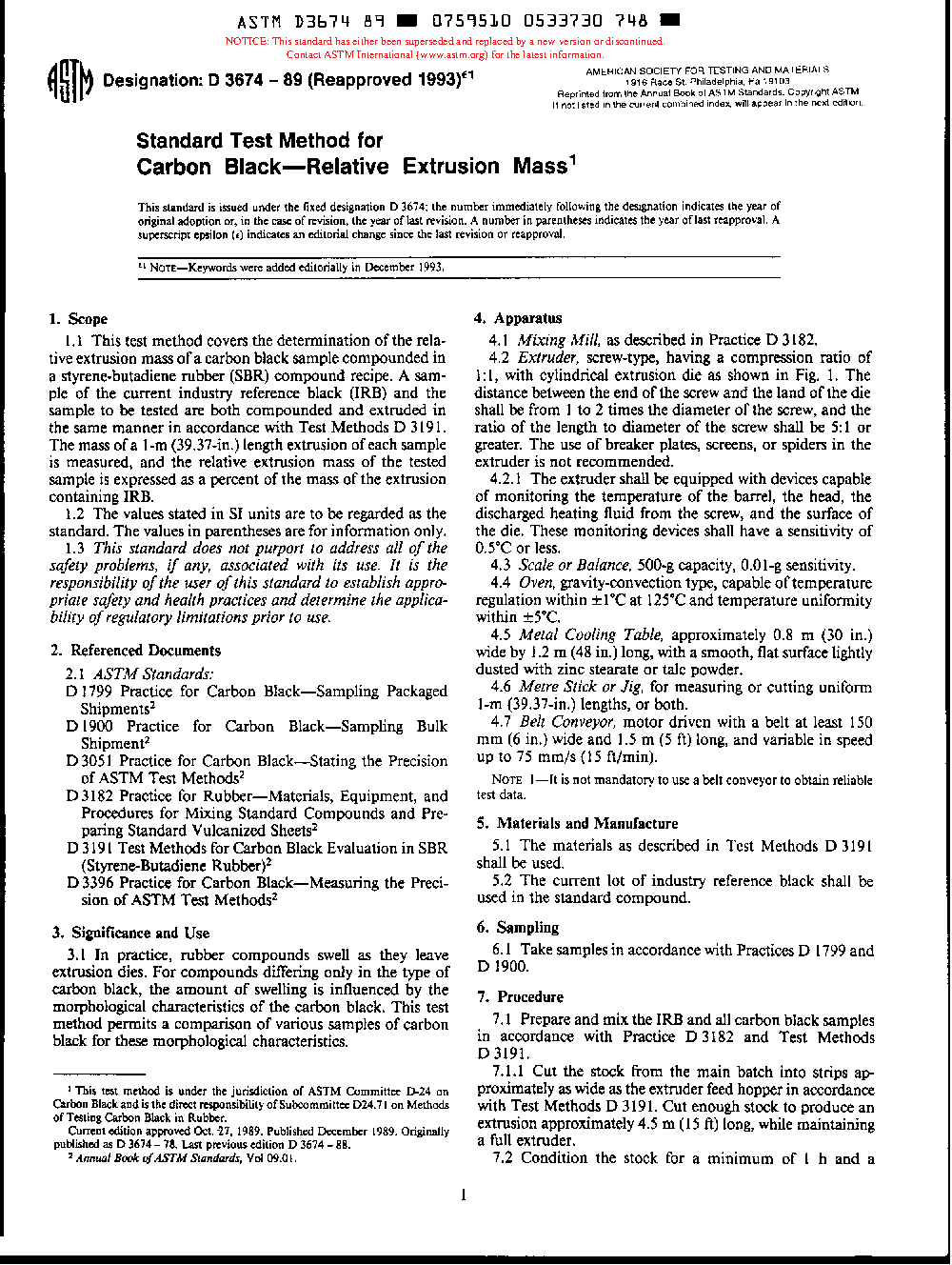 ASTM D3674-89(1993)e1