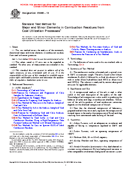 1.1 This test method covers the analysis of the commonly determined major and minor elements in combustion residues from coal utilization processes.