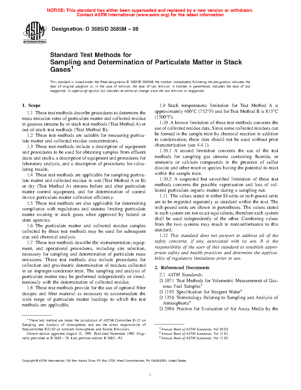 1.9 Stack temperatures limitation for Test Method A is approximately 400°C (752°F) and for Test Method B is 815°C (1500°F).