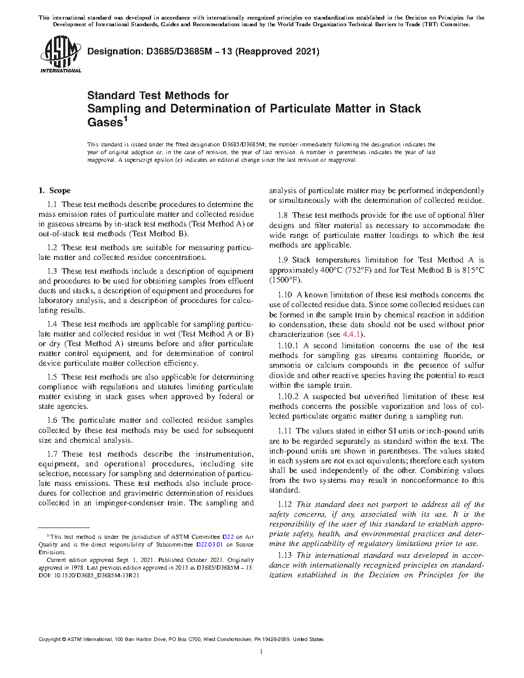 1.13 This international standard was developed in accordance with internationally recognized principles on standardization established in the Decision on Principles for the Development of International Standards, Guides and Recommendations issued by the World Trade Organization Technical Barriers to Trade (TBT) Committee.