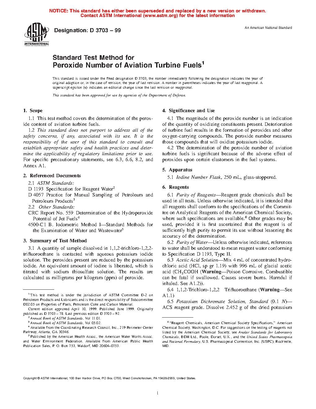 5.2 The determination of the hydroperoxide number of aviation turbine fuels, gasoline and diesel is significant because of the adverse effect of hydroperoxide upon certain elastomers in the fuel systems.