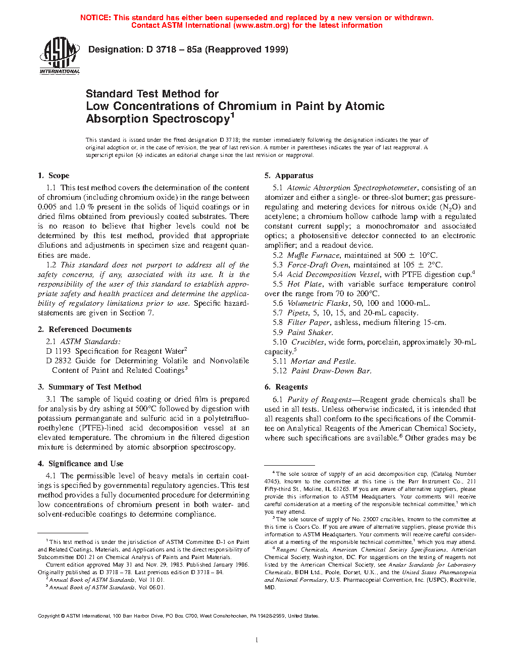 4.1 The permissible level of heavy metals in certain coatings is specified by governmental regulatory agencies. This test method provides a fully documented procedure for determining low concentrations of chromium present in both water- and solvent-reducible coatings to determine compliance.