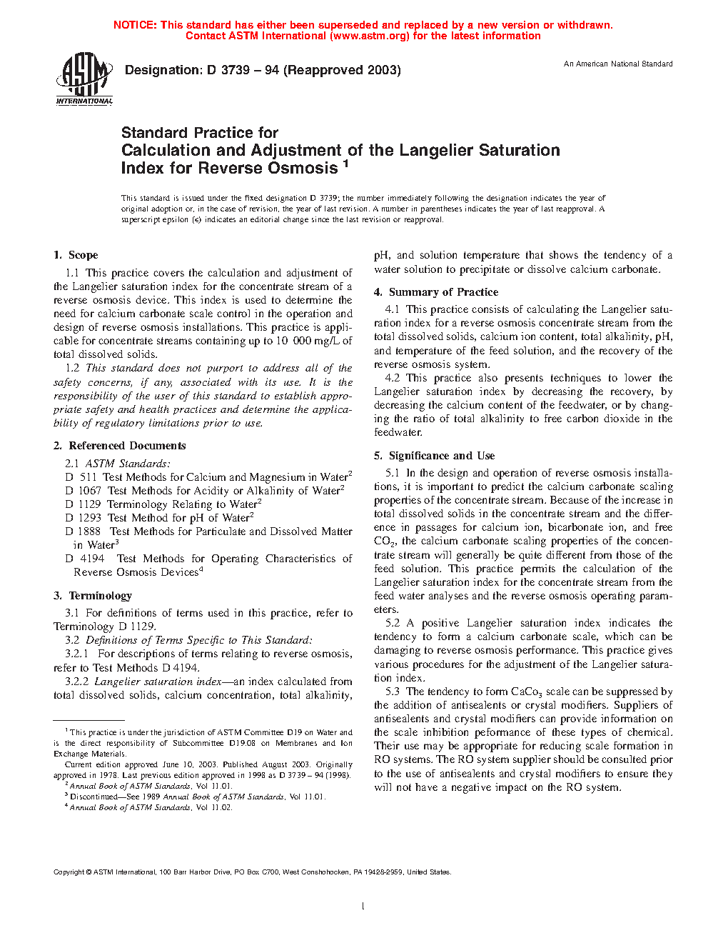 5.2 A positive Langelier saturation index indicates the tendency to form a calcium carbonate scale, which can be damaging to RO performance. This practice gives various procedures for the adjustment of the Langelier saturation index.