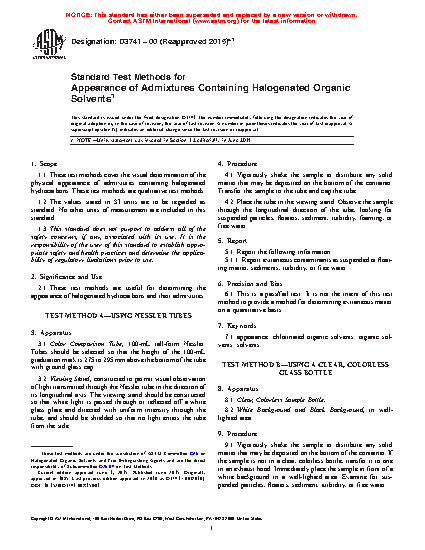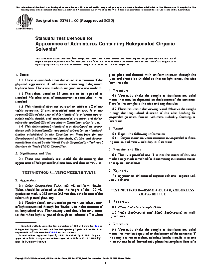 2.1 These test methods are useful for determining the appearance of halogenated hydrocarbons and their admixtures.