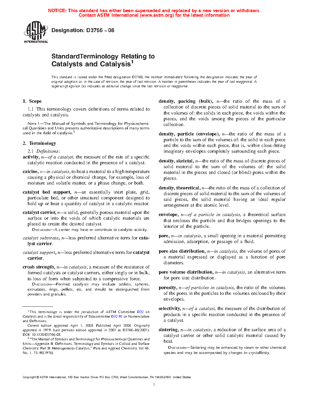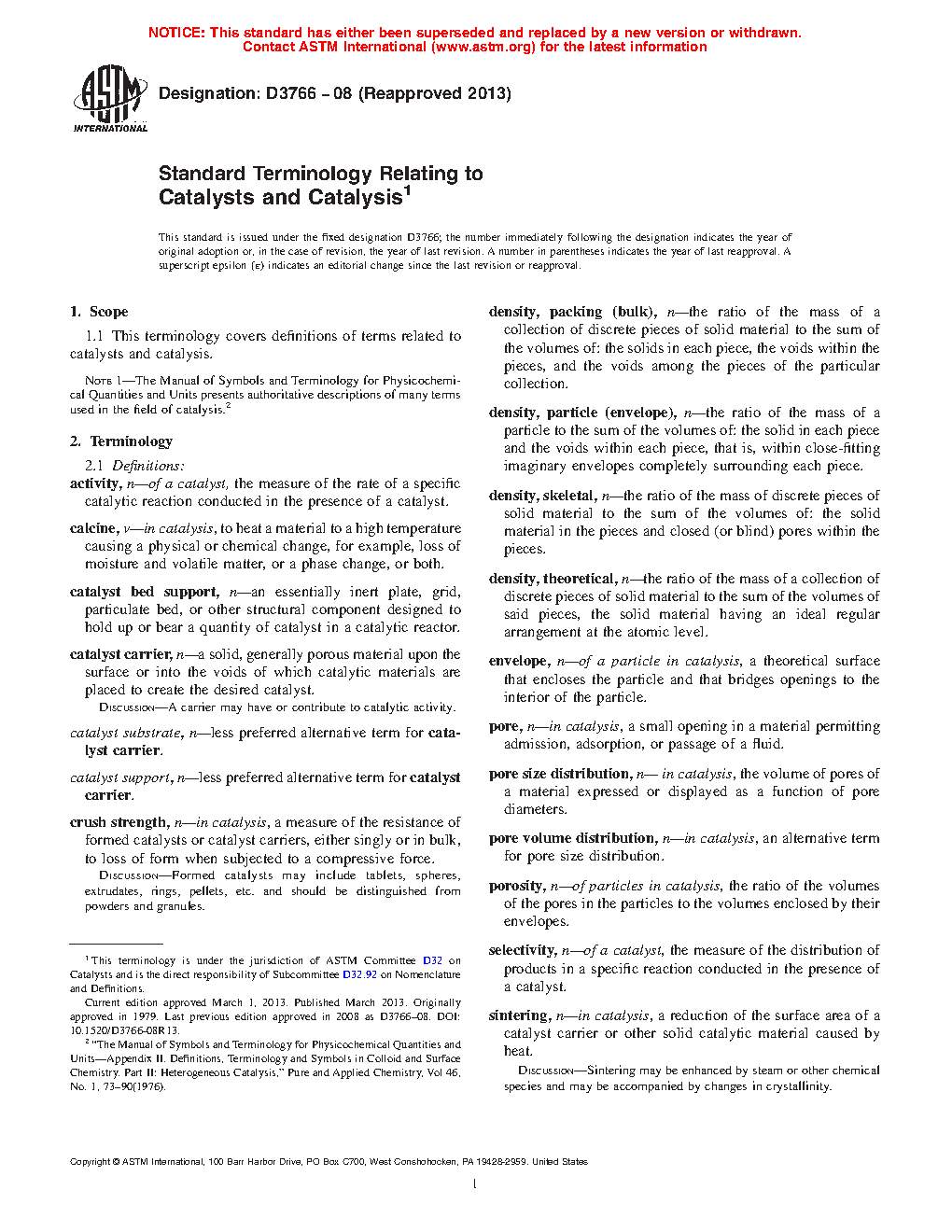 Note 1: The Manual of Symbols and Terminology for Physicochemical Quantities and Units presents authoritative descriptions of many terms used in the field of catalysis.2