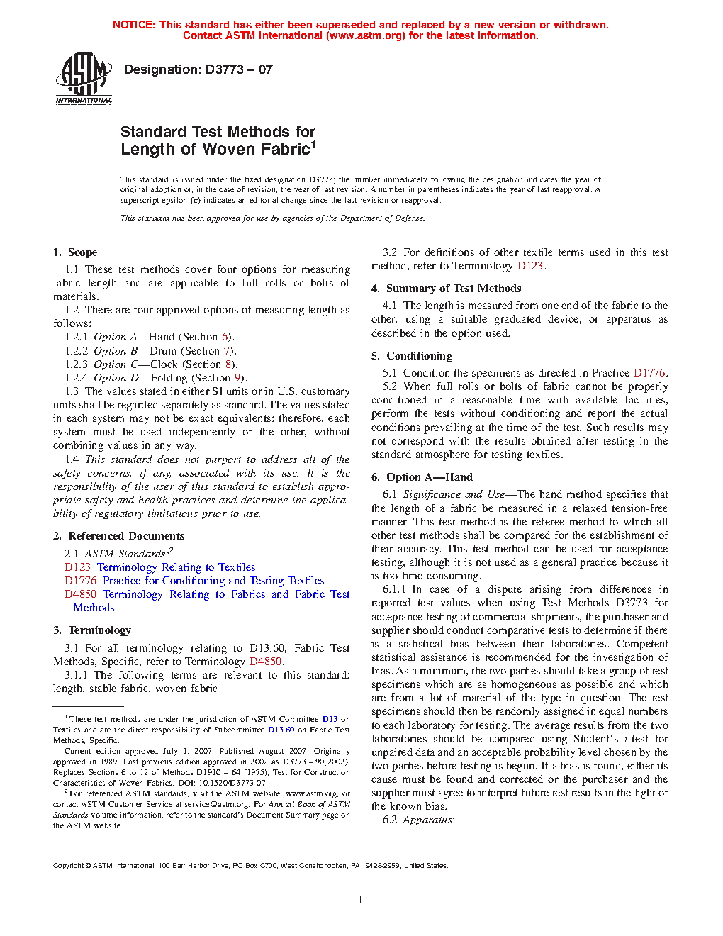 1.1 These test methods cover four options for measuring fabric length and are applicable to full rolls or bolts of materials.