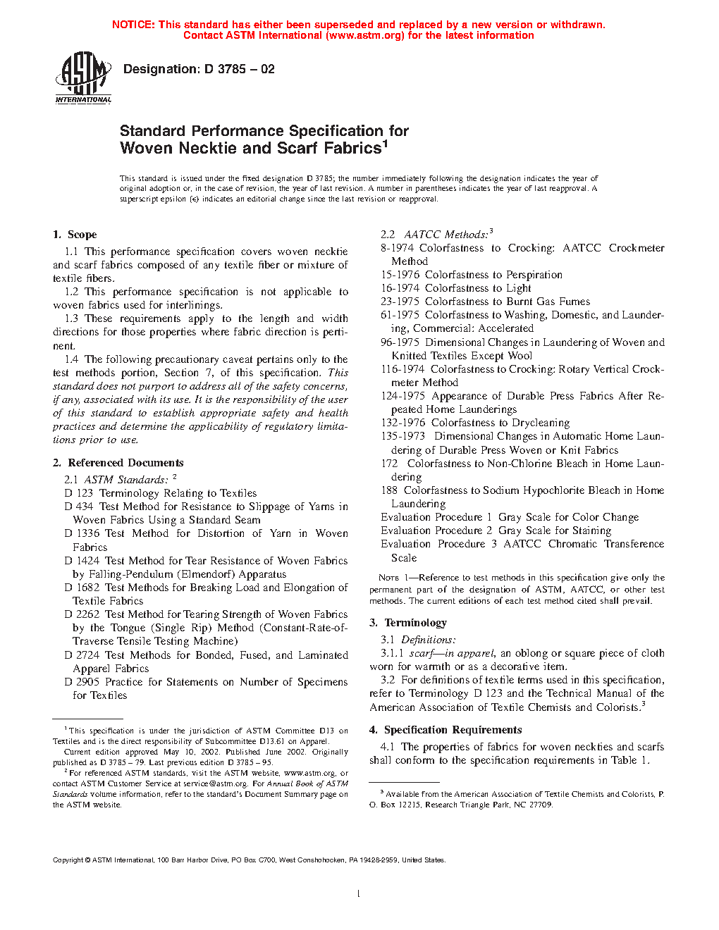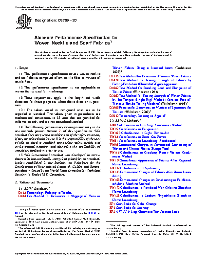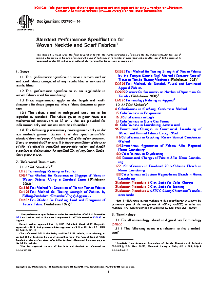 1.1 This performance specification covers woven necktie and scarf fabrics composed of any textile fiber or mixture of textile fibers.