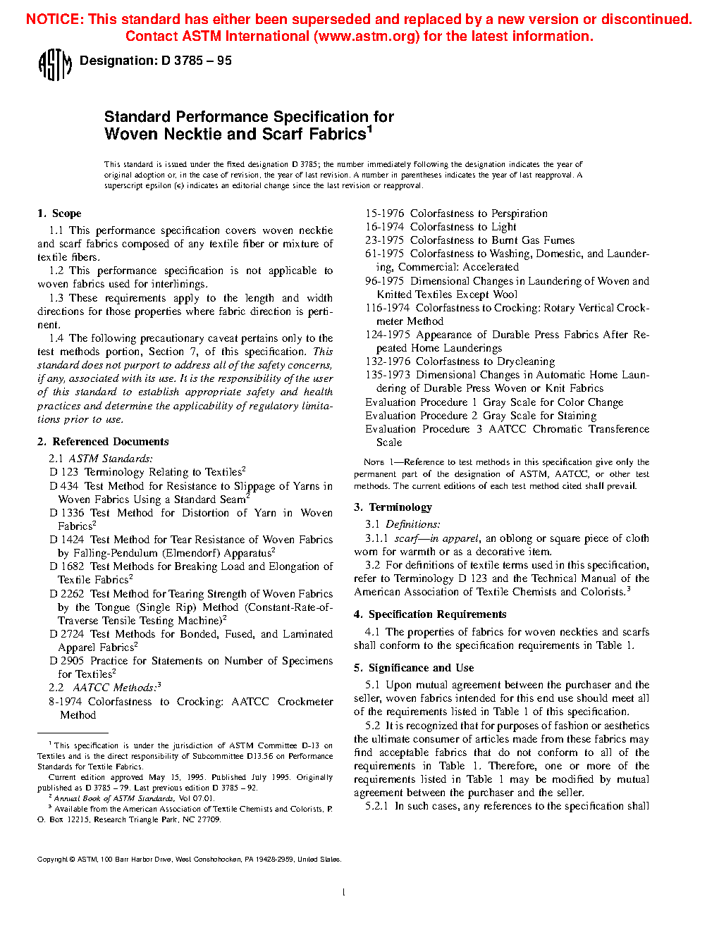 5.3 Where no prepurchase agreement has been reached between the purchaser and the seller, and in case of controversy, the requirements listed in Table 1 are intended to be used as a guide only. As noted in 5.2, ultimate consumer demands dictate varying performance parameters for any particular style of fabric.