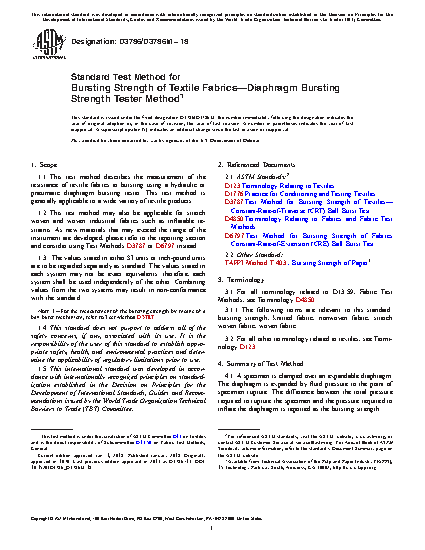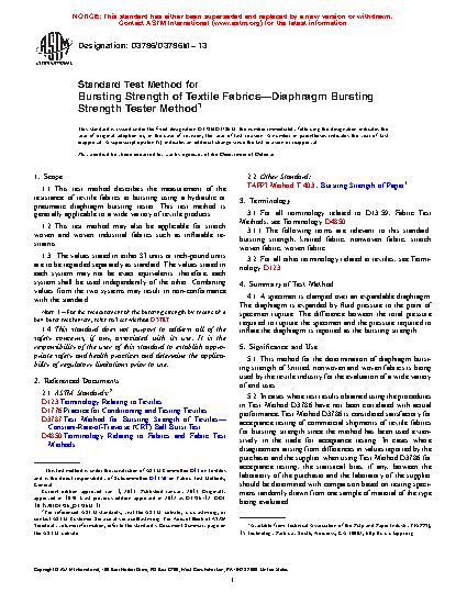 5.1 This method for the determination of diaphragm bursting strength of knitted, nonwoven and woven fabrics is being used by the textile industry for the evaluation of a wide variety of end uses.
