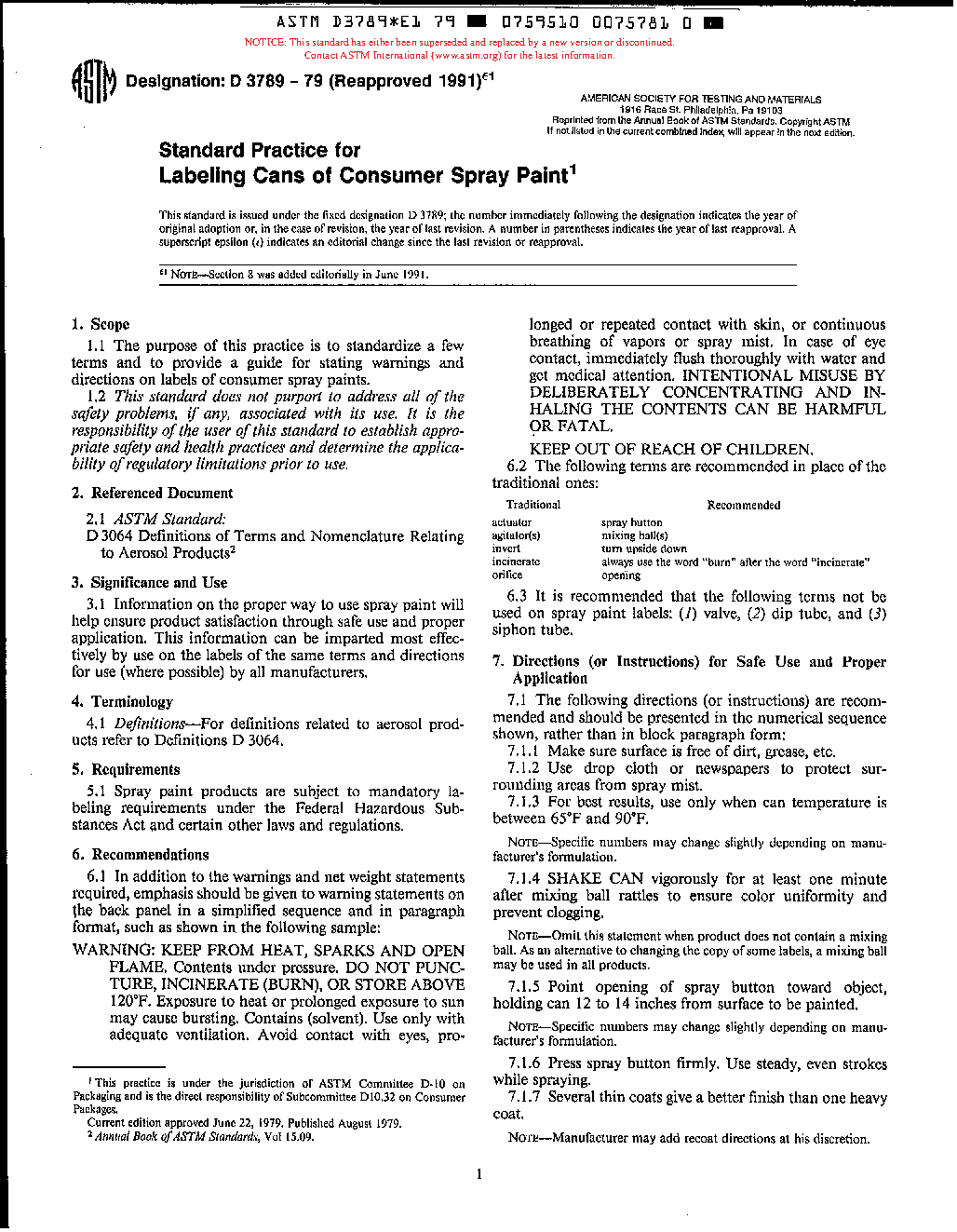 Practice for Labeling Cans of Consumer Spray Paint (Withdrawn 1997)